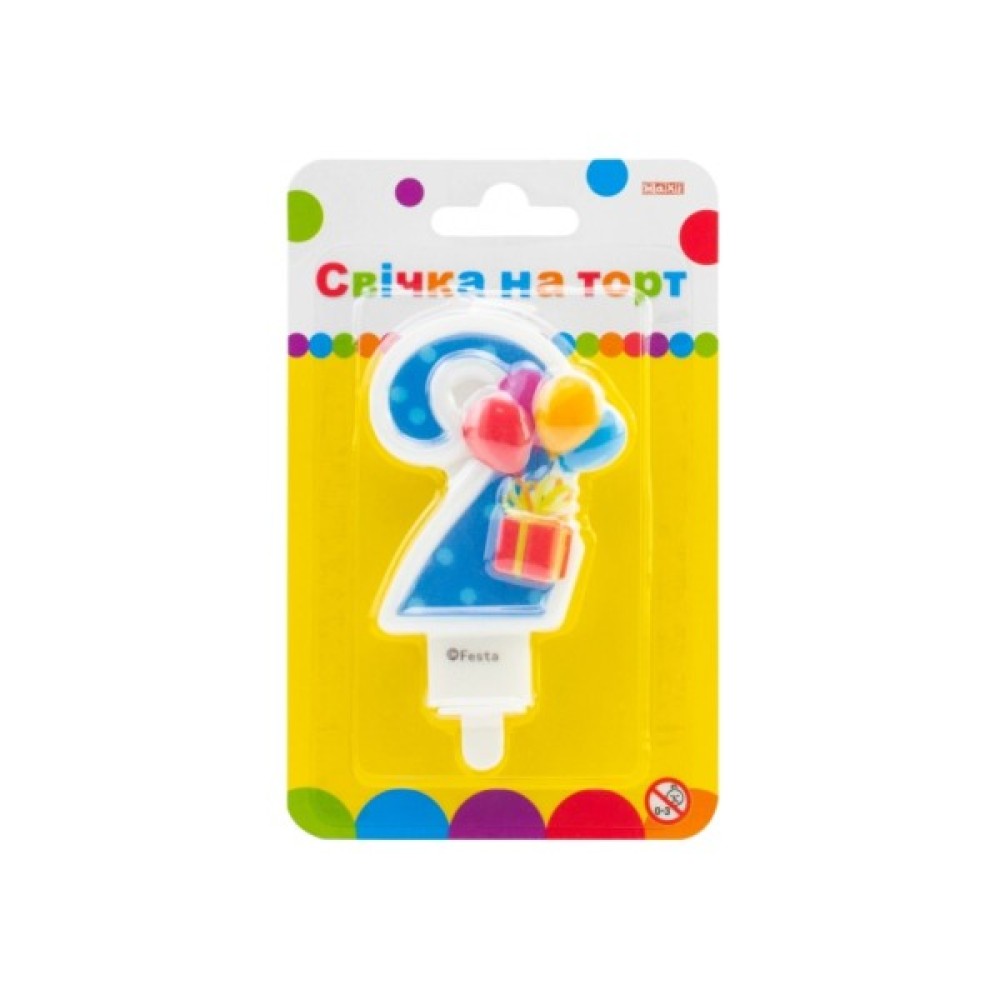 Свічка Maxi двостороння "2" із зображенням надувних кульок висотою 7,62 см (MX622069-2)