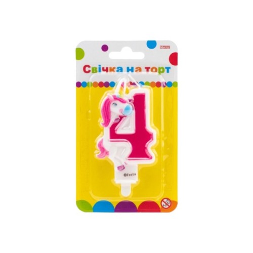 Свічка для тематичного дитячого Дня народження, з яскравим дизайном, із зображення єдинорога, прикрасить ваш святковий торт та подарує приємні враження від свята вам та вашим гостям.