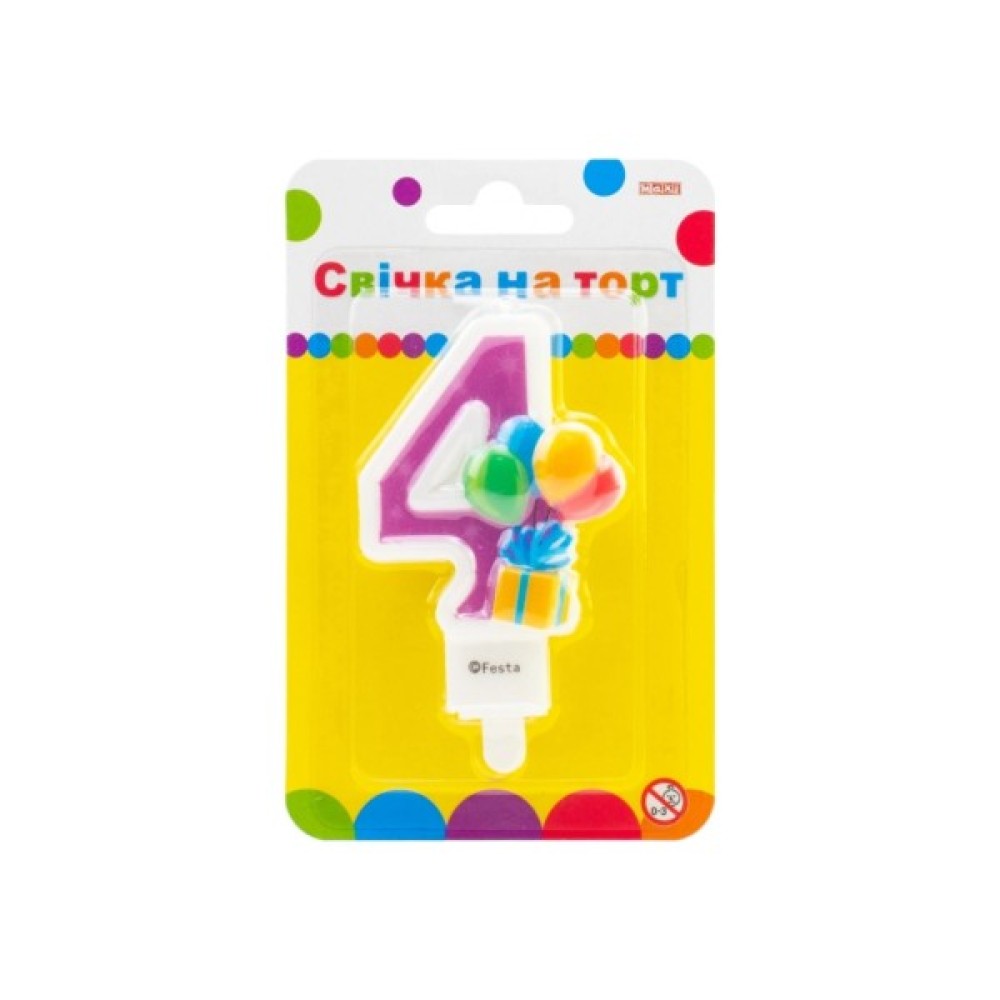 Свічка для тематичного дитячого Дня народження, з яскравим дизайном, із зображення повітряних кульок, прикрасить ваш святковий торт та подарує приємні враження від свята вам та вашим гостям.