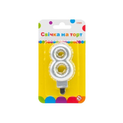 Свічка Maxi срібляста двостороння "8" у вигляді надувної кульки висотою 7,62 см (MX622095S-8)