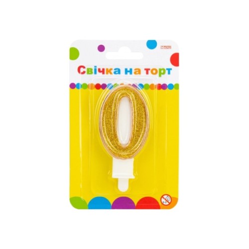 Свічка Maxi золотиста двостороння з блискітками "0", 7,62 см, на торт (MX622083-0)