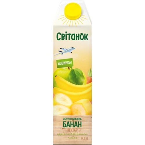 Сік, Світанок, Яблучно, морквянобанановий, нектар, з, м’якоттю, гомогенізований, стерилізований, 950, мл, 4820209564143