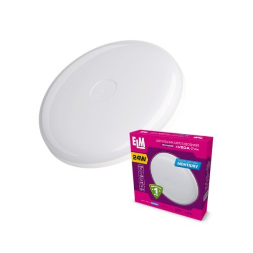 Світильник ELM VEGA-24W 4000K (26-0082) - це ідеальний вибір для створення комфорту та затишку у вашому приміщенні. Завдяки потужності у 24 Вт та високому світловому потоку 2160 Лм, він забезпечує достатній рівень освітленості, а колірна температура 4000K дарує приємне нейтральне світло, яке створює ідеальний баланс між жовтим і білим спектрами.