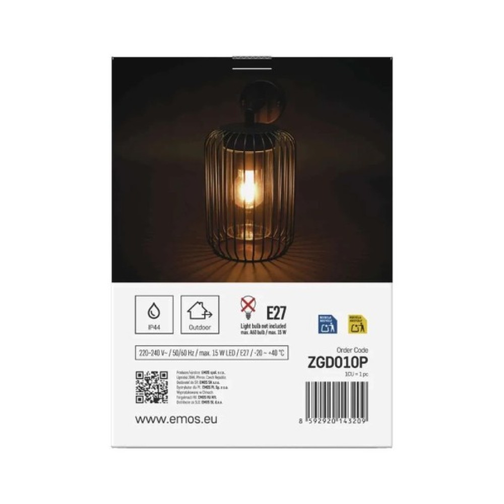 Світлодіодний садовий світильник EMOS ZGD010P від чеського виробника Emos. Це сучасний вуличний світильник, призначений для освітлення фасадів будинків, входів, терас або альтанок. Його сучасний елегантний дизайн гармонійно доповнить будь-який інтер'єр. Корпус виготовлений з високоякісного алюмінію, а розсіювач із міцного пластику, що забезпечує довговічність та стійкість до дії зовнішнього середовища. Підходить для використання з різними типами LED ламп із цоколем E27, максимальна потужність яких не повинна перевищувати 15 Вт. Завдяки ступеню захисту IP44 світильник надійно працює в умовах підвищеної вологості та пилу.