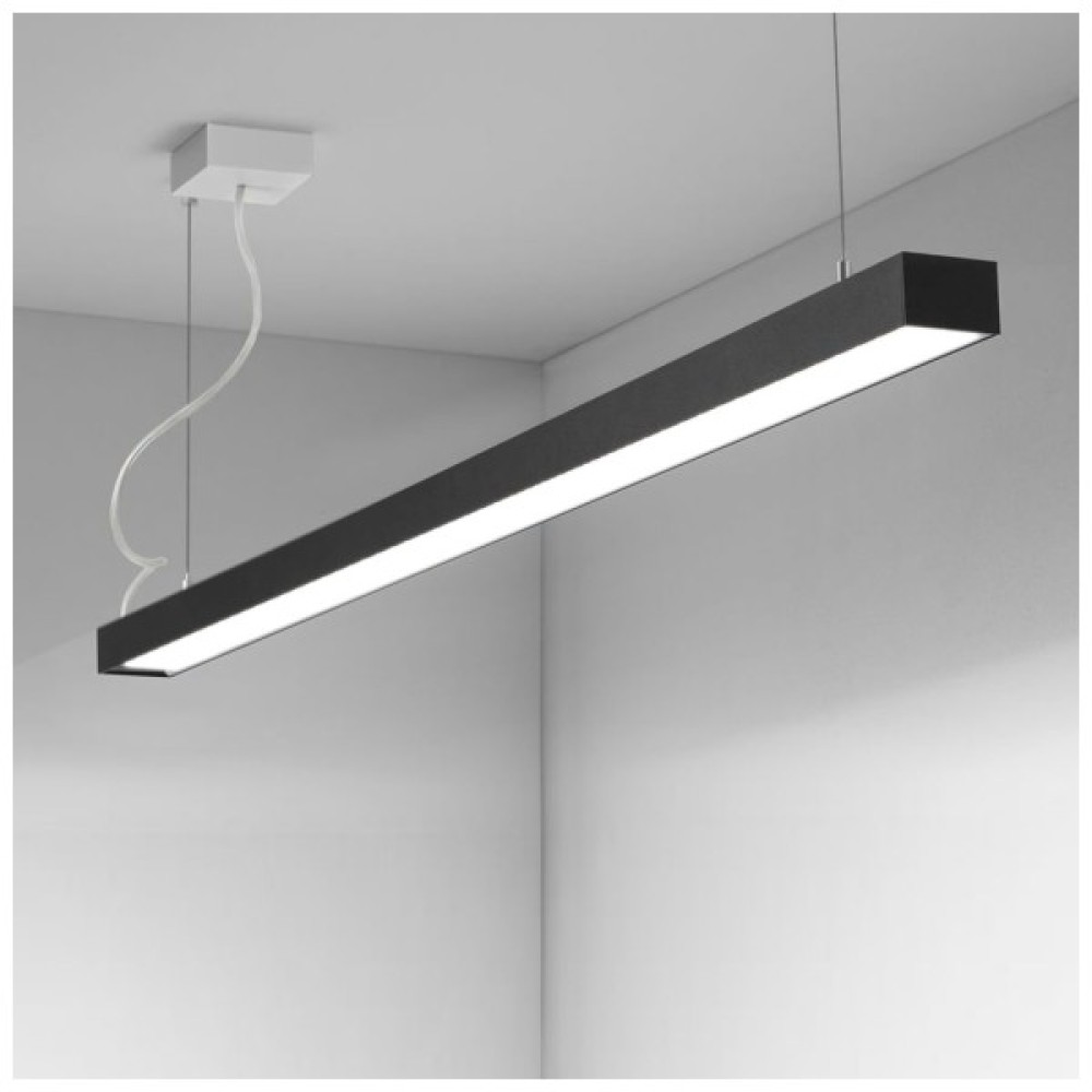 Чорний колір корпусу надає світильнику універсальності та елегантності, роблячи його ідеальною прикрасою для будь-якого інтер'єру. Лінійний формат з кутом розсіювання 120° створює м’яке і гармонійне розсіювання світла, що додає приміщенню відчуття простору та затишку. Завдяки матовому розсіювачу, цей елемент додає інтер'єру особливого шарму.