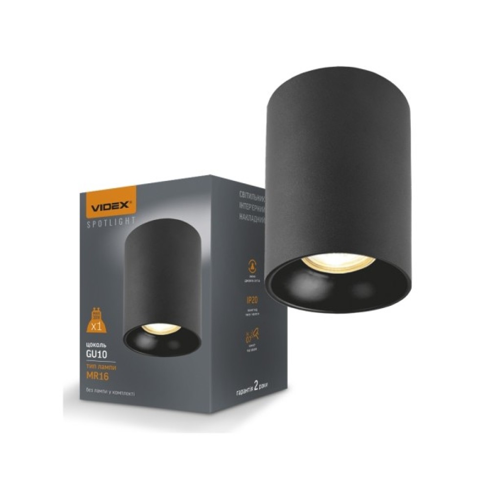 Світильник точковий Videx під лампу GU10 накладний Чорний (VL-SPF14A-B)