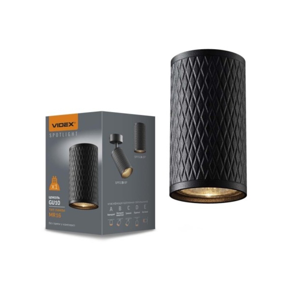 Світильник точковий Videx під лампу GU10 SPF02A накладний чорна призма (VL-SPF02A-BP)