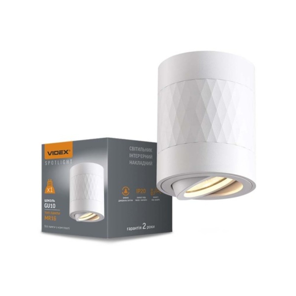 Світильник точковий Videx під лампу GU10 SPF04A накладний білий + біла призма (VL-SPF04A-WPW)