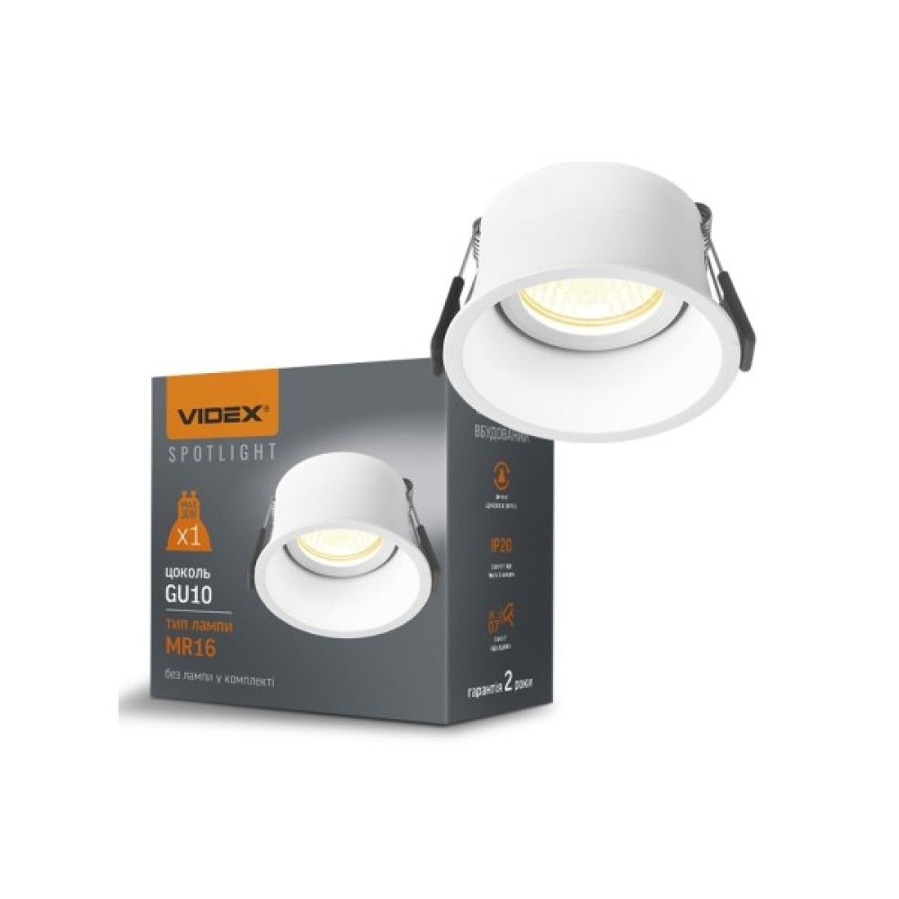 Світильник, точковий, Videx, під, лампу, GU10, врізний, Круглий, Білий, VLSPF09RW