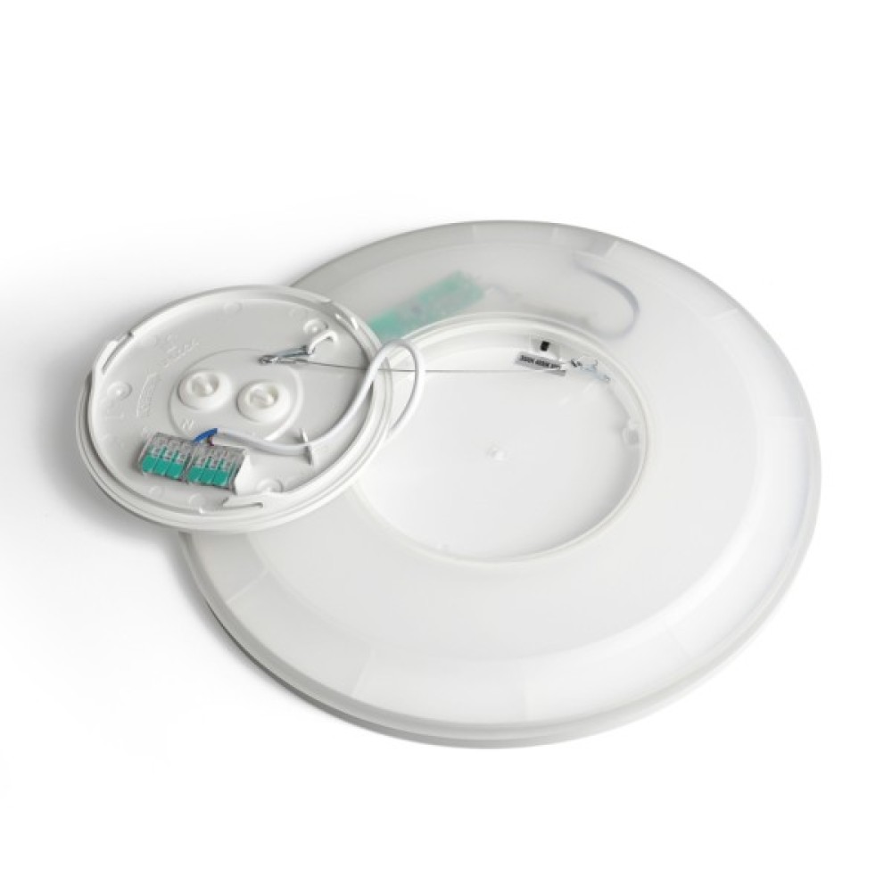 Один з ключових елементів цього світильника — його кругла форма, яка доповнює будь-який сучасний інтер'єр. Універсальний білий колір гарно виглядає як на стелі, так і на стінах, надаючи їм вишуканість та чистоту. Тип монтажу — накладний, що робить установку простою та зрозумілою навіть для непрофесіоналів.