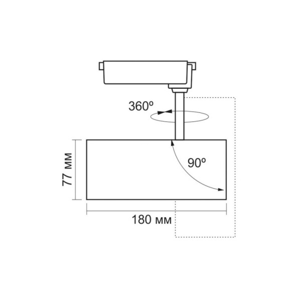 Цей трековий світильник відрізняється обертовим корпусом на 360°, що дозволяє легко змінювати кут направлення світла, роблячи його незамінним для виставок, торгових приміщень та офісів. Монтаж на рейку дозволяє переміщати світильник, підлаштовуючи освітлення під ваші потреби. Розмір 77x180x200 мм робить його компактним і зручним у встановленні.