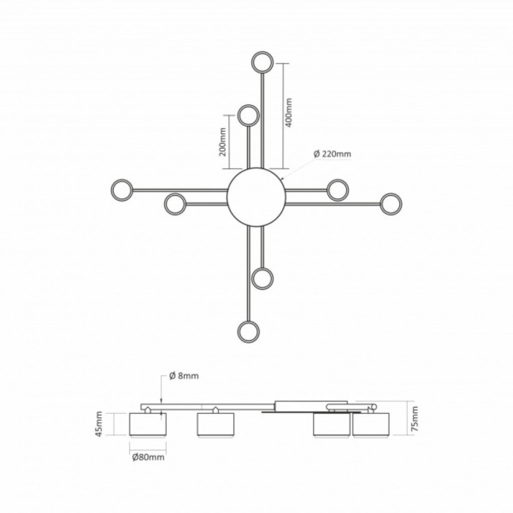 Особливістю даної моделі є її світлодіодна (LED) панель, яка забезпечує якісне освітлення завдяки можливості встановлення 8 ламп GX53 з потужністю до 30 Вт кожна. Це дозволяє вам налаштувати яскравість відповідно до ваших потреб, маючи змогу освітлити будь-яку кімнату, від вітальні до дитячої, або навіть кафе чи ресторану. Варто відзначити, що світильник має кут розсіювання 100°, що забезпечує рівномірний розподіл світла без темних зон.