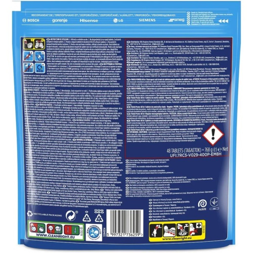 Finish Powerball All in 1 Max – безфосфатний засіб для миття посуду в посудомийних машинах в таблетках.