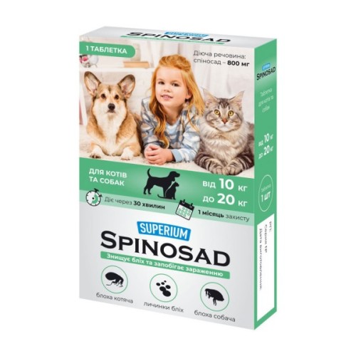 Таблетки для тварин Superium Spinosad від бліх для кішок і собак вагою 10-20 кг (4823089337777)