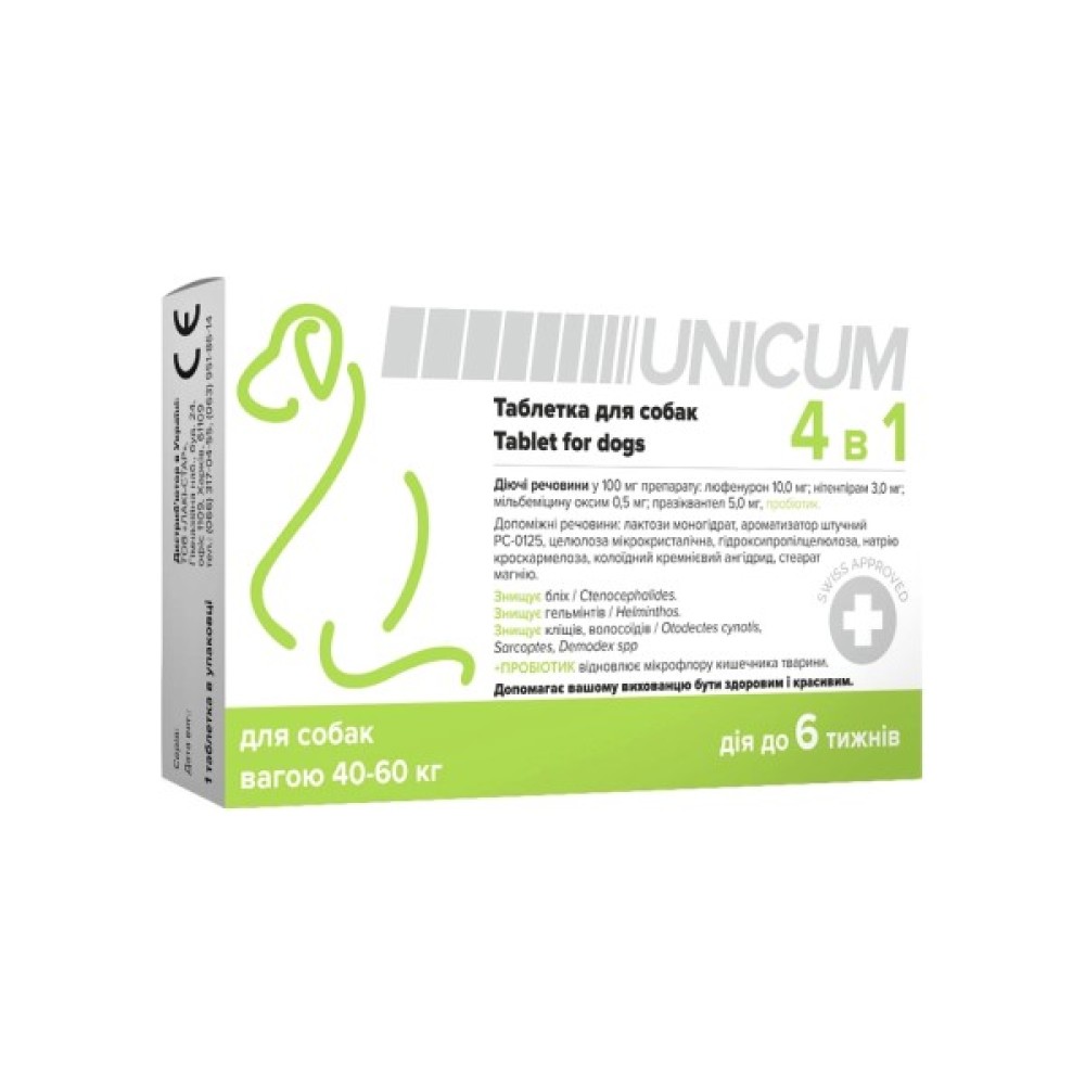 Таблетки, тварин, Unicum, 4, 1, від, бліх, кліщів, гельмінтів, з, пробіотиком, собак, 4060, кг, 4820275970343