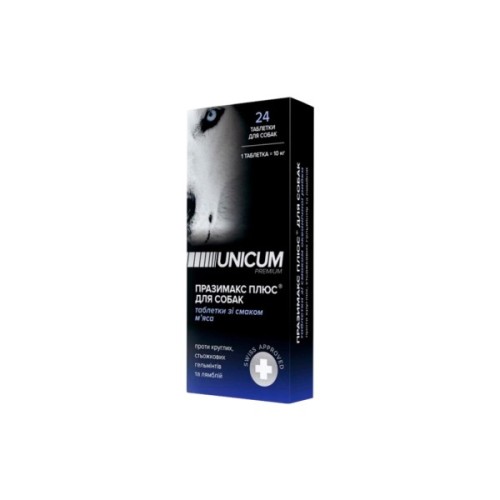 Таблетки Unicum Premium Празимакс Плюс для собак протигельмінтні зі смаком м'яса, 24 шт.
