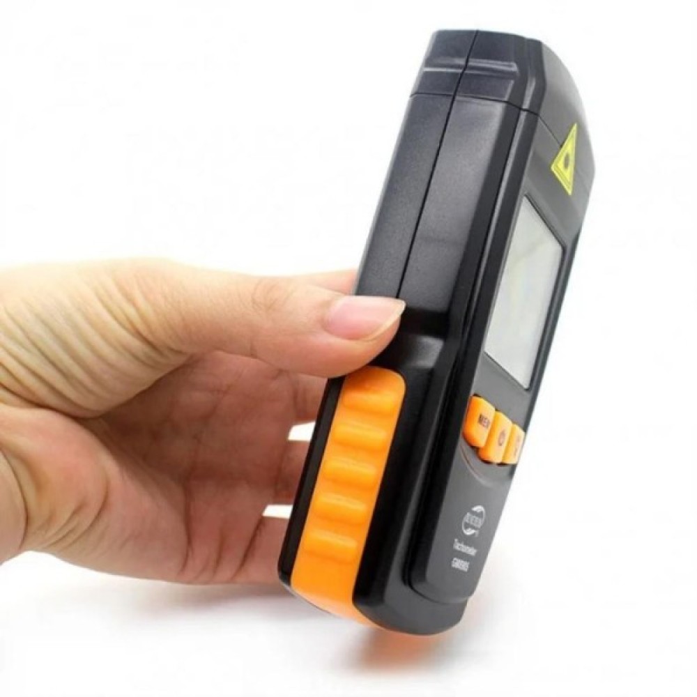 Також до особливостей лазерного тахометра GM8905 Benetech можна віднести можливість точного вимірювання частоти обертання на відстані до 500 мм. Розширена функціональність даного оптичного тахометра дозволяє зберігати дані вимірів, фіксувати мінімальні і максимальні значення, а також відображати середнє значення вимірювань.