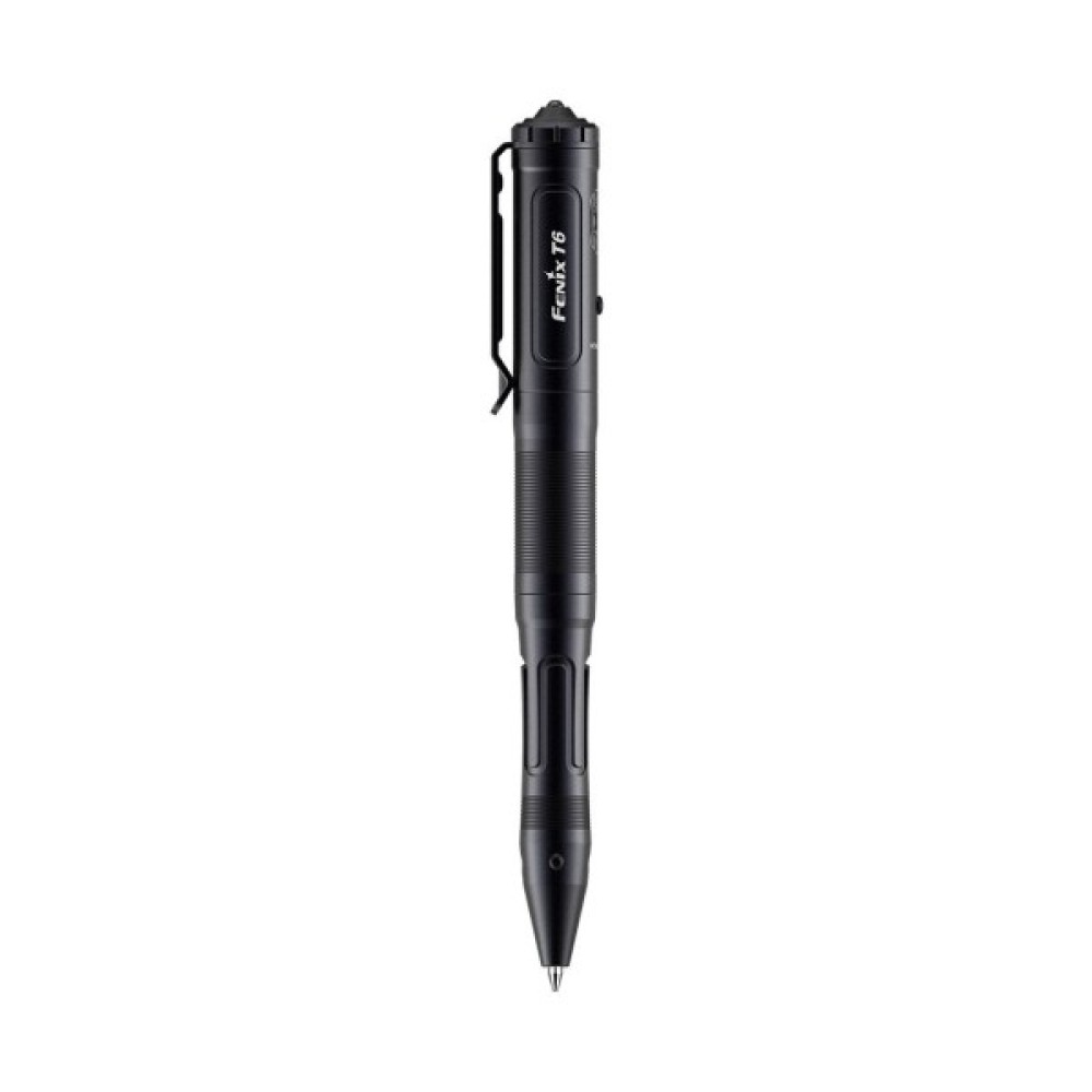 Тактична ручка Fenix T6 є автоматичною моделлю для самооборони, здатна підсвічувати, розбивати вікна і писати. Максимальна яскравість освітлення становить 80 люменів, а далекобійність променя – 18 метрів. Ручка підтримує заряджання Type-C. Для свічення в ручці використовується якісний світлодіод з терміном служби 50 тисяч годин. Живлення походить від внутрішнього літій-полімерного акумулятора ємністю 100 мАг. Заряджання здійснюється за допомогою порту USB Type-C. Ця міцна модель забезпечена керамічною кулькою, яка допомагає розбити скло та врятуватися у надзвичайних випадках. Усередині є імпортний картридж Schmidt для плавного та легкого листа. Як і очікувалося, цей міцний та високопродуктивний інструмент для письма досить міцний, щоб надати вам перевагу в тактичних операціях.