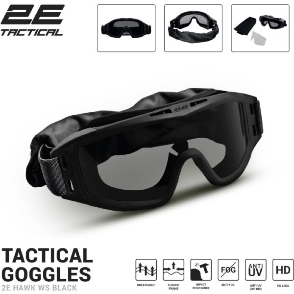 Тактичні, окуляри, 2E, Hawk, WS, Black, Antifog, сумка, 3, лінзи, 2ETGGWSBK