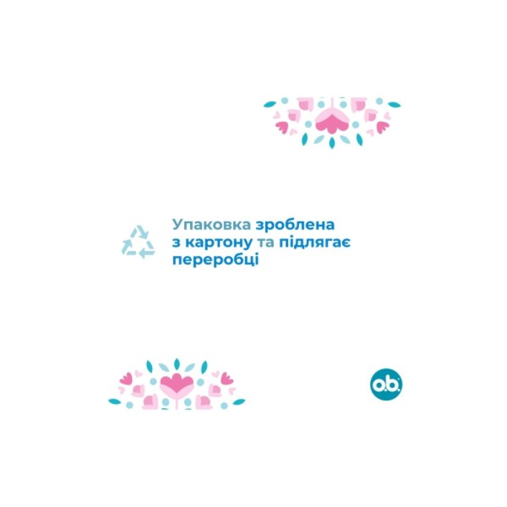 - Тампони o.b.® не містять ароматизаторів, шкідливих хімічних речовин, в їх виробницстві не використовується хлор при відбілюванні, протестовані гінекологами.