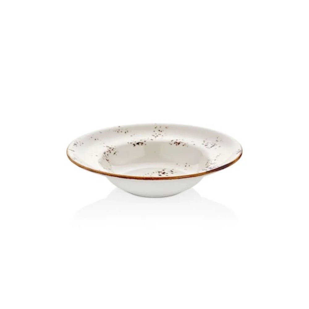 Тарілка глибока від турецького бренду By Bone серії Harmony Elegance виготовлена з фарфору. Виконана в білому кольорі, з чорними крапками та золотою облямівкою. Тарілка відрізняється зручністю та практичністю. Ідеально підходить для широкого спектру продуктів та страв. Прекрасно підійде як для домашнього використання, так і для закладів громадського харчування.