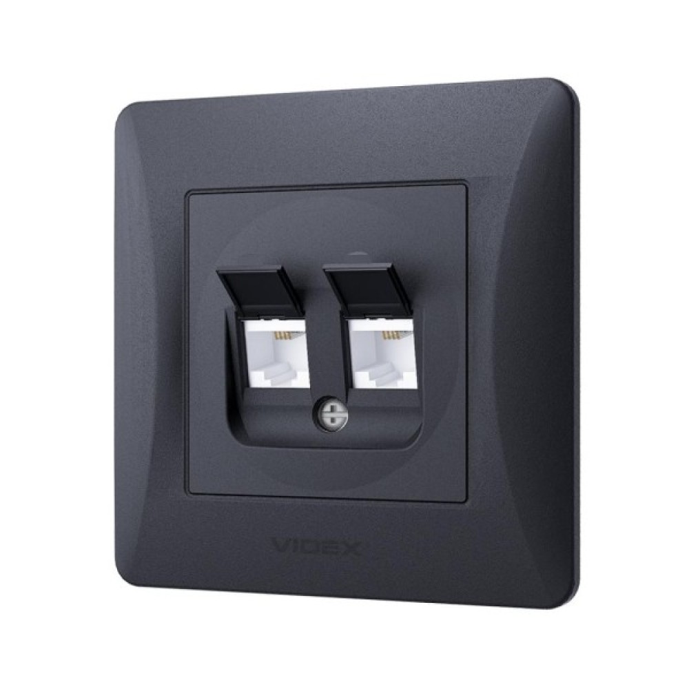 Телефонна розетка Videx BINERA CAT3 + CAT3 подвійна черн (VF-BNSK2TF3-BG)