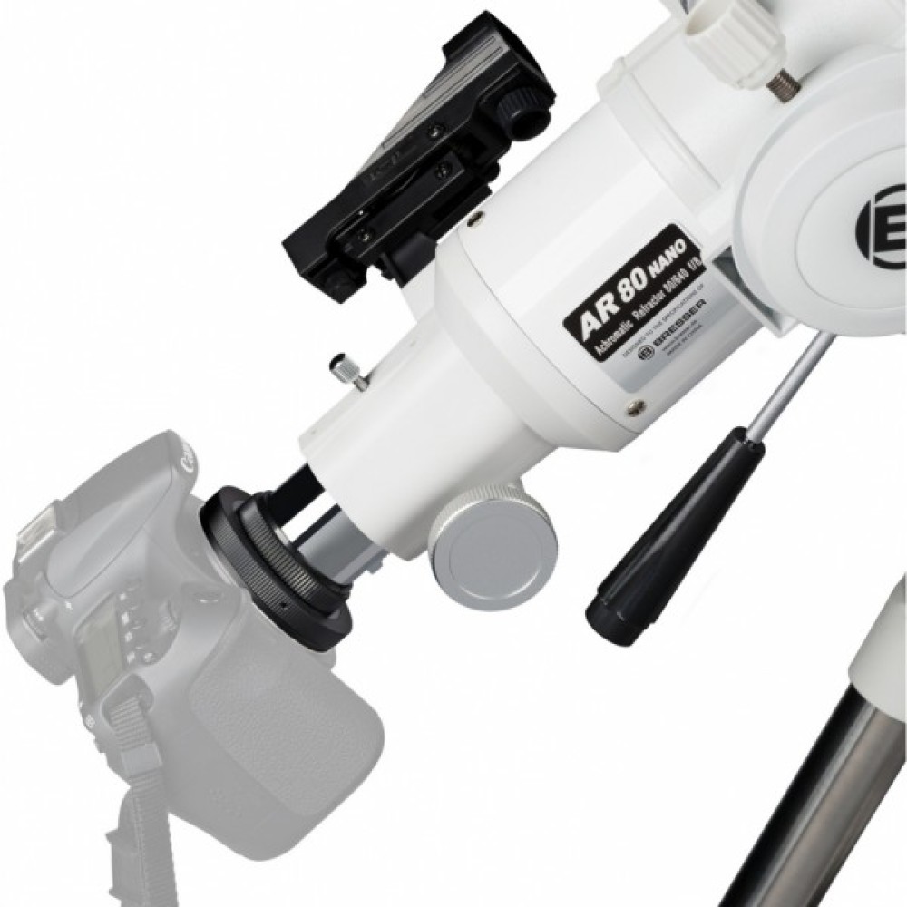 Телескоп Bresser Messier AR-80/640 Nano AZ є короткофокусної среднеапертурний рефрактор з якісною оптикою і нової азимутальной монтуванням Nano AZ, зручною для роботи з легкими трубами середньої апертури. Телескоп буде вельми цікавий для початківців користувачів, так як має ідеальний баланс між світлосилою і можливістю отримати достатню збільшення при роботі з якісним базовим окуляром. Модель відмінно підходить для спостереження об'єктів Сонячної системи, а також для наземних спостережень. Телескоп поставляється практично зібраним, і з необхідним набором аксесуарів для негайного старту спостережень. Телескоп дуже стійкий, так як поставляється в комплекті зі сталевою монтуванням. Цікавим аксесуаром в комплектації є адаптер для смартфона,