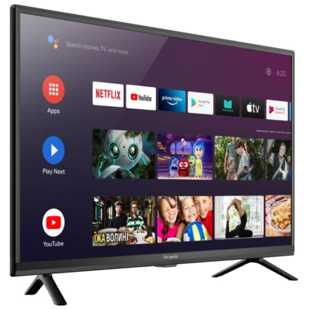 Завдяки потужному ARM Cortex-A55*4 процесору, Bravis 32K5000H швидко обробляє великі обсяги даних і забезпечує безперебійне функціонування Smart TV. Операційна система Android дає змогу насолоджуватися багатством контенту від таких платформ, як YouTube і Netflix, просто підключившись до Wi-Fi.