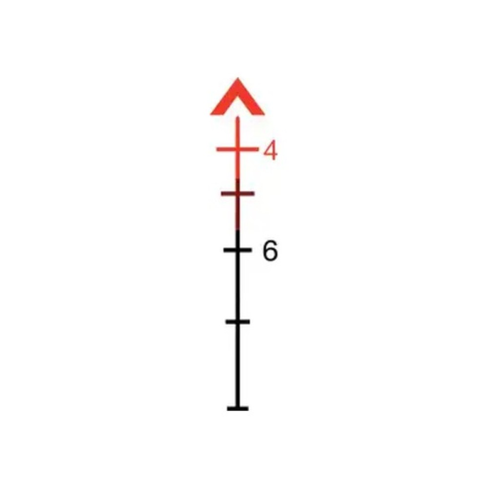 Прицільна сітка BAC Red Chevron зручна для стрільби, як на ближній, так і на дальній дистанції. Вона включає в себе компенсатор падіння кулі (BDC) з додатковими точками прицілювання, розрахованими на траєкторію польоту кулі 5.56 (.223) і забезпечує дальність до 800 метрів. Ширина "шеврону" в основі становить 5,53 МОА, що відповідає 48 см на 300 метрів. Це дозволяє оцінювати дальність для силуетних цілей.