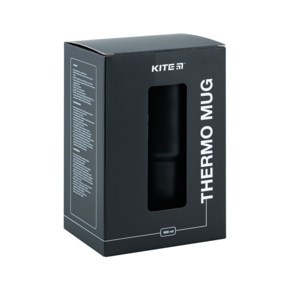 Термокухоль Kite 600 мл чорний K24-1207-1 - незамінний в дорозі, на прогулянках та пікніках. він чудово утримує тепло чи холод, зберігаючи температуру напоїв до 4-х годин. Ви зможете довго ласувати гарячим ароматним чаєм або ідеально крижаним лимонадом.