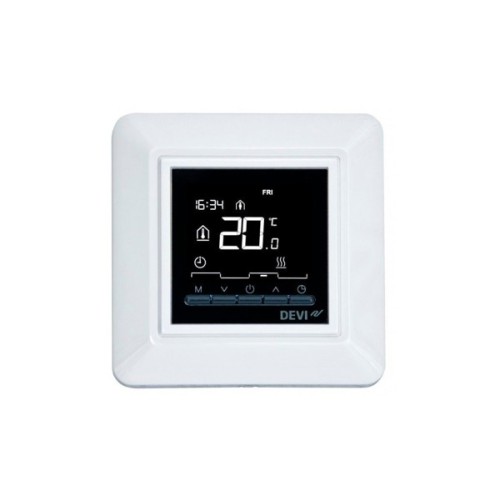 DEVIreg Opti – терморегулятор для підігріву підлоги з електронним керуванням. Терморегулятор розроблений у технології ЕКО-дизайн, має ШІМ регулювання темпрератури, а також функції програмування температури за часом.