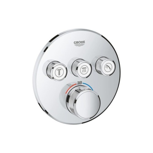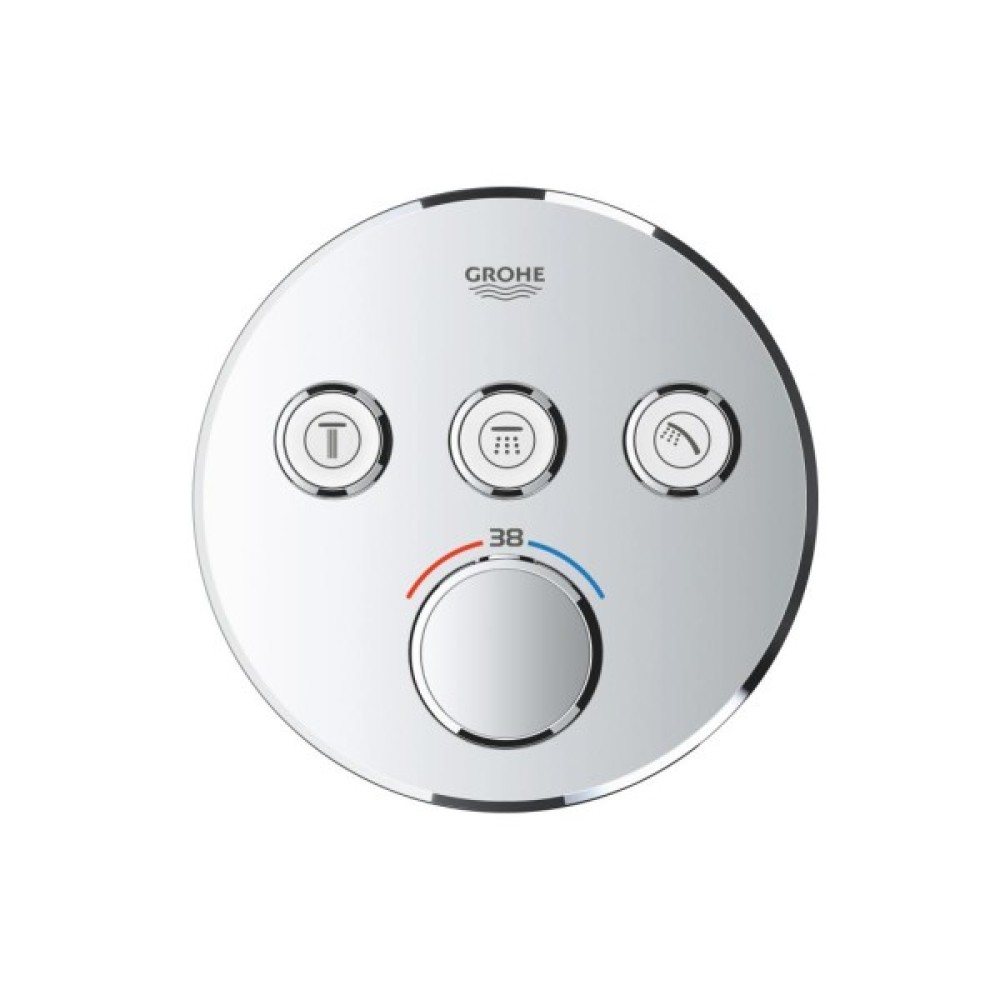 - GROHE SmartControl® інноваційне управління - вмикається натисканням кнопки Вкл/Викл, збільшення водного потоку повертанням рукоятки від режиму EcoJoy (мінімальний) до Full Flow (максимальний)