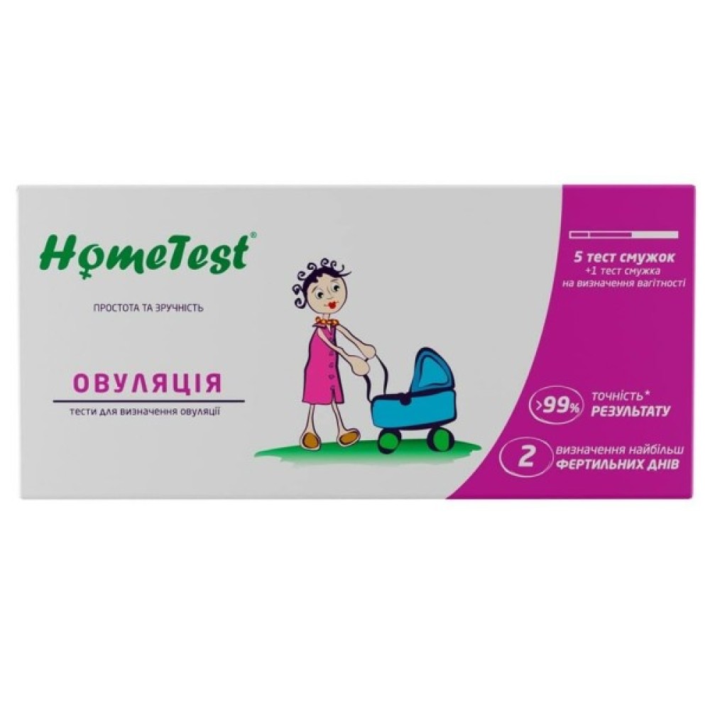 Тест-смужки для визначення овуляції Home Test — 5 тест-смужок для визначення періоду овуляції (визначення викиду лютеїнізувального гормону (ЛГ) в організмі жінки). Допоможуть точно визначити 2 найсприятливіші дні для зачаття дитини.