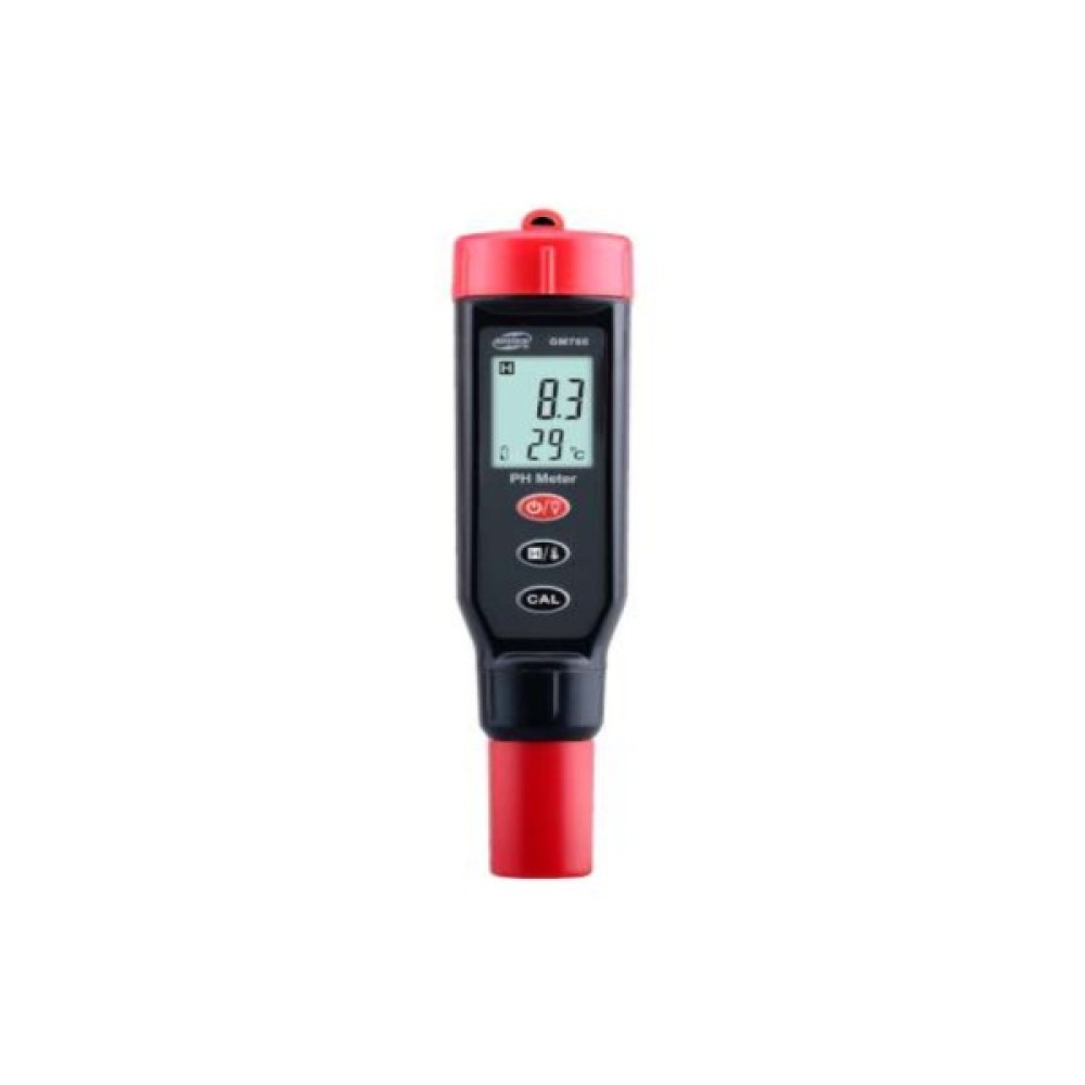 Вимірник кислотності BENETECH GM760 - це цифровий вимірювальний прилад, призначений для вимірювання кислотності (pH) різноманітних рідин. Крім цього, прилад обладнаний температурним датчиком та дозволяє визначати і температуру рідини. Також завдяки датчику температури pH-метр має функцію автоматичної температурної компенсації, що дозволяє визначати кислотність розчину з більшою точністю. Усі показання приладу виводяться на рідкокристалічний дворядковий екран із підсвічуванням. Розмір екрана дозволяє одночасно відображати кислотність рідини та температуру. Крім цього, на екрані показаний рівень заряду батареї та одиниці вимірювання температури - °С або °F.