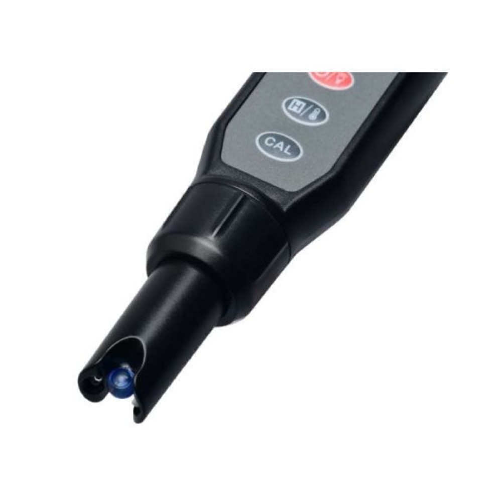 - Кнопка CAL. Довге натискання на кнопку CAL запускає автоматичну процедуру калібрування пристрою за трьома точками. Також для цих цілей у комплекті з GM760 поставляються три калібрувальні розчини із заданою кислотністю. Періодичне проведення калібрування дозволяє підтримувати заявлену точність приладу протягом усього терміну експлуатації..