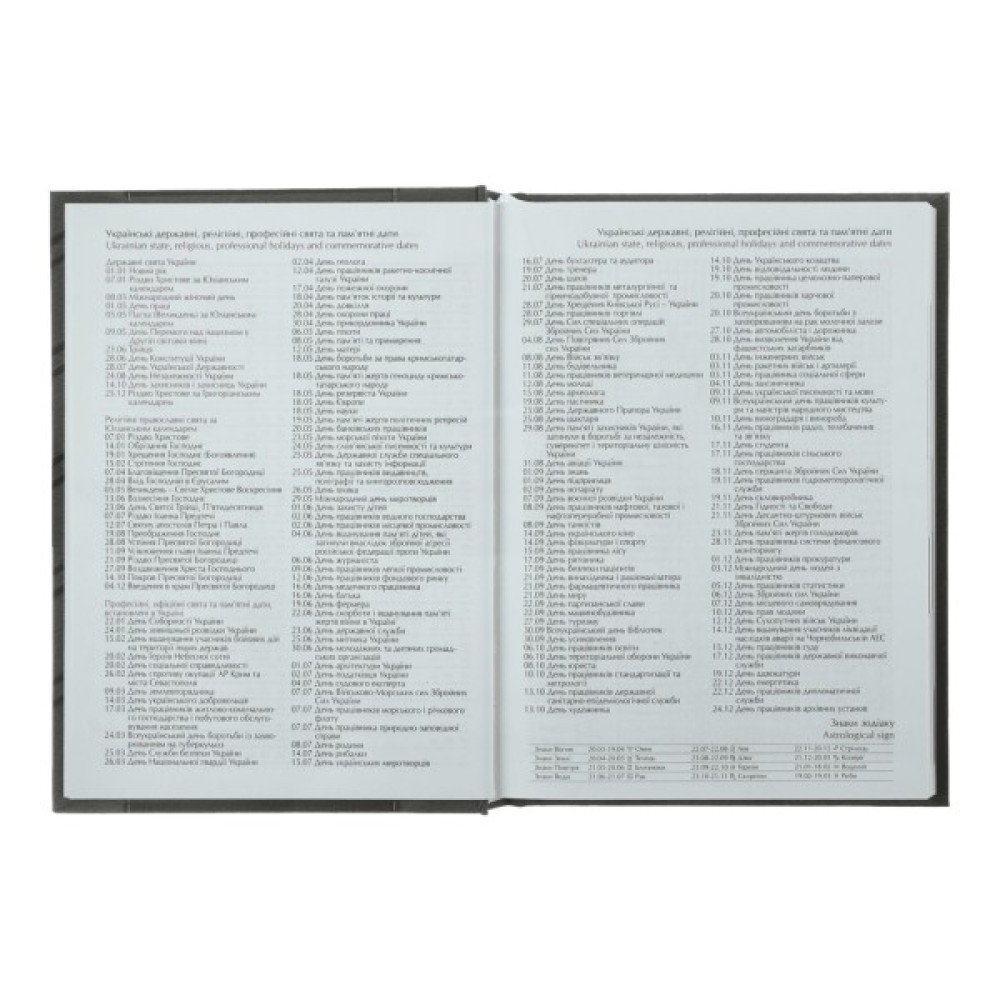 Додатково українські державні свята; професійні та релігійні свята; телефонні коди міст; календар; карта світу; Яскравий дизайн