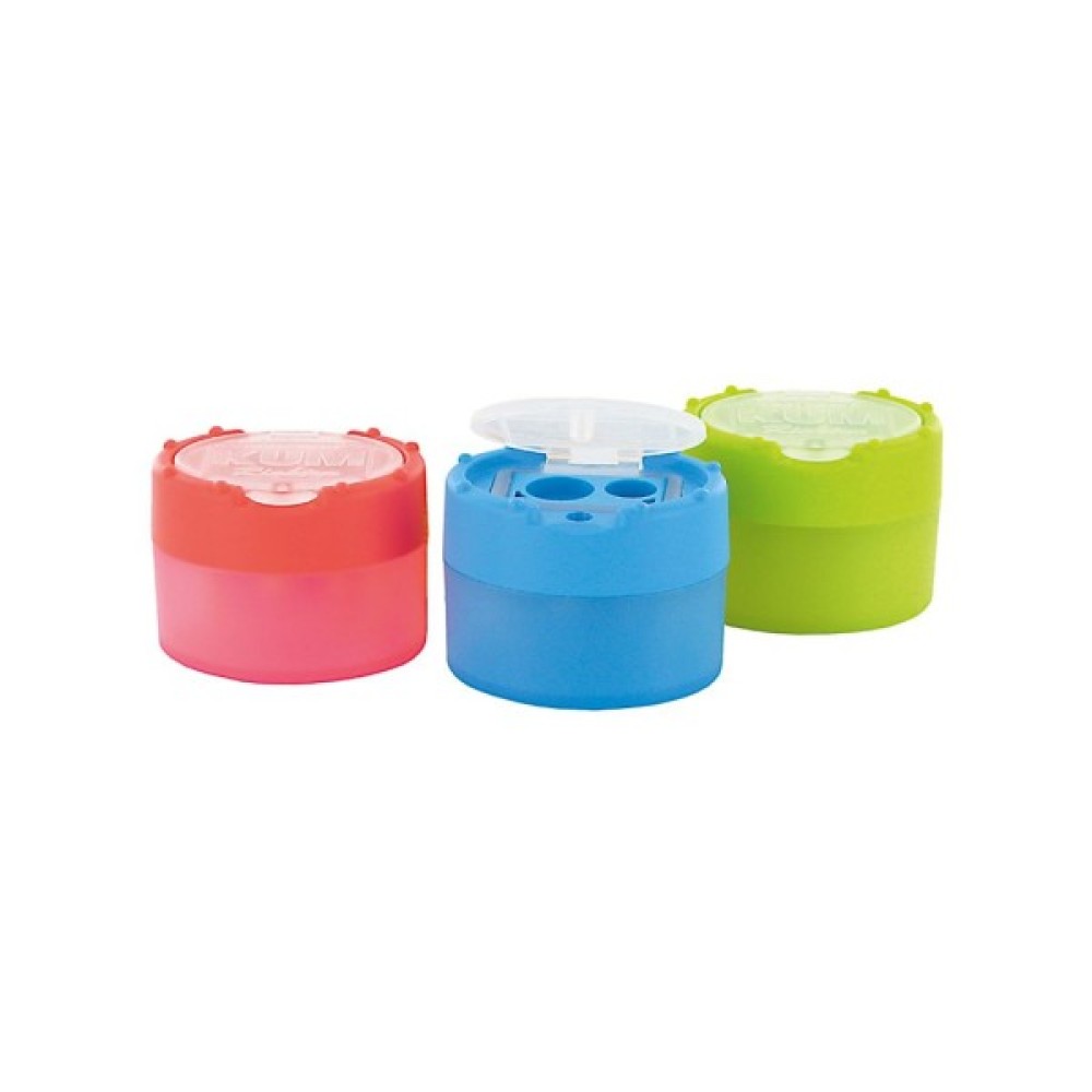 Точилка пластикова з контейнером, 2 відділення (діаметр 8 і 11 мм). Яскраві кольори сподобаються і школярам, і дорослим. Отвори закриваються щільно - стружка точно не випаде.