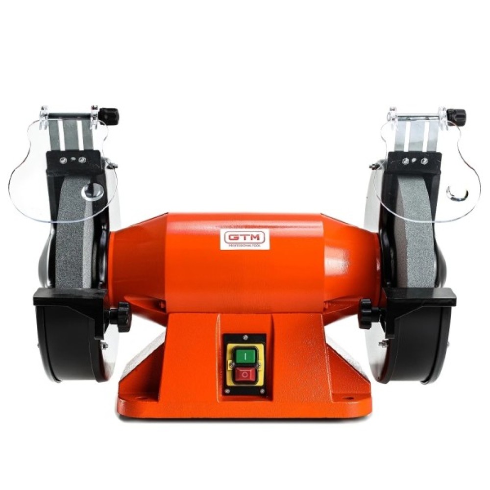 GTM MD3225HD - електричний інструмент з двома абразивними кругами для заточування і шліфування виробів з матеріалів різної щільності. Може використовуватися для сухого заточування ножів, стамесок, а також інших інструментів. Верстат живиться від побутової електромережі 220 В і споживає всього 900 Вт.