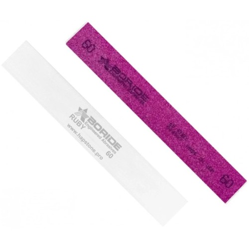 Камені серії Boride Ruby використовуються на обдирному етапі обробки металу. У лінійці зернистості Ruby присутні лише обдирні бруски від 60 до 220 гріт. Абразивне зерно брусків серії Ruby – це легований цирконієм електрокорунд, зв'язка досить м'яка. Це забезпечує каменям цієї серії надзвичайно високу абразивну здатність, що гарантує високу продуктивність знімання матеріалу на будь-яких сталях.