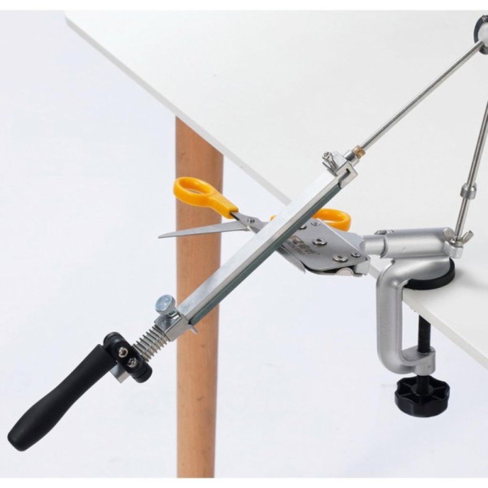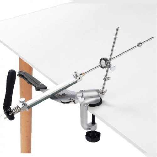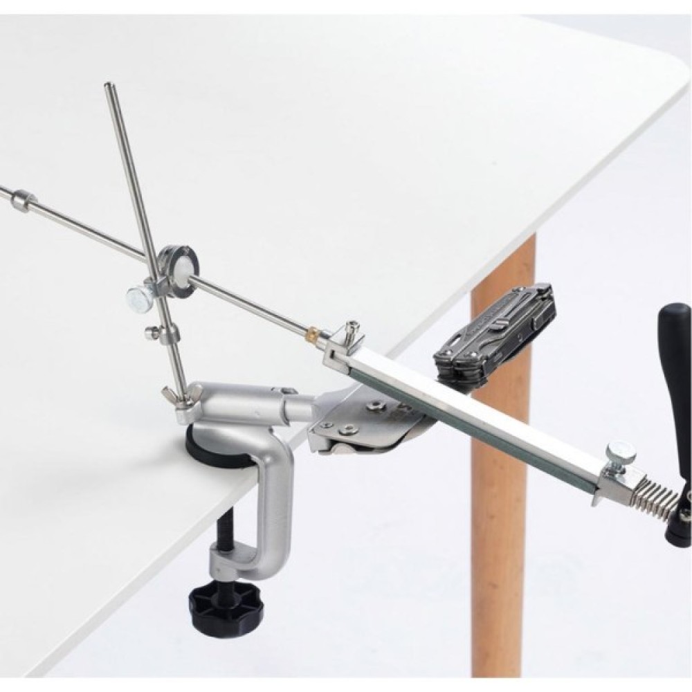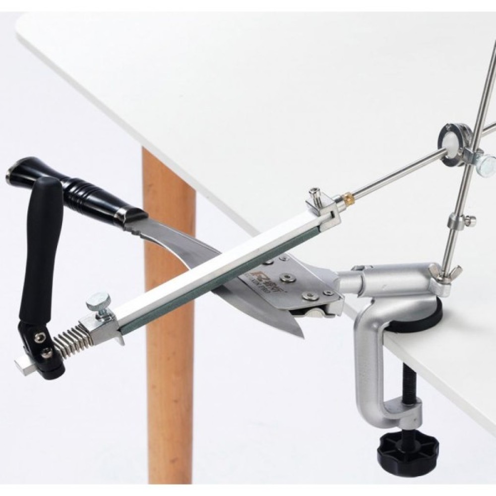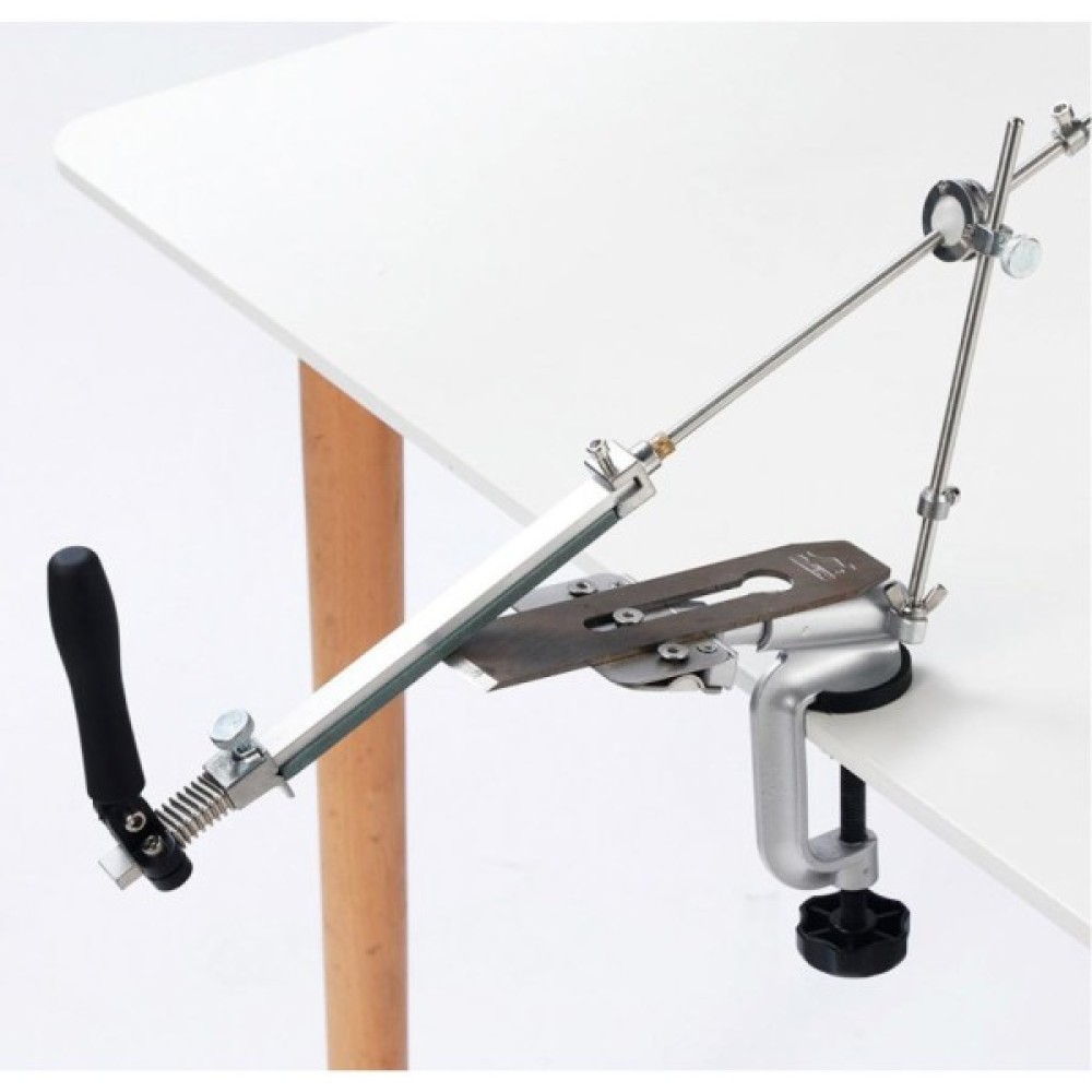 Ruixin PRO IV - це нова модель "клону" на відому точилку Edge Pro. Вона повністю виконана з металу, нове 4 покоління з нержавійки + алюмінієвий сплав. Основа точила можна прикрутити до стільниці лещатами, які йдуть в комплекті. Точильний верстат збирається з декількох деталей, тому в розібраному вигляді він дуже компактний і зручний для транспортування. У комплект входить чотири точильних каменя, кожен з яких закріплений на пластиковій основі. Їх можна досить швидко закріпити на направляючий і по черзі змінювати для досягнення найкращого результату. Зернистість цих каменів складає 120, 320, 600 і 1500 грит. Виробники рекомендують заточувати лезо плавними рухами «від себе», не натискаючи на клинок до появи задирки. Крім ножів, за допомогою Ruixin PRO IV можна заточити ножиці, будівельні або сільськогосподарські інструменти, а також інші предмети, які потребують подібний догляд. Кут заточування кожен користувач може вибрати самостійно, завдяки чому вдається якісно заточити ножі різного призначення: товсті мисливські, туристичні або найбільш тонкі філейні.