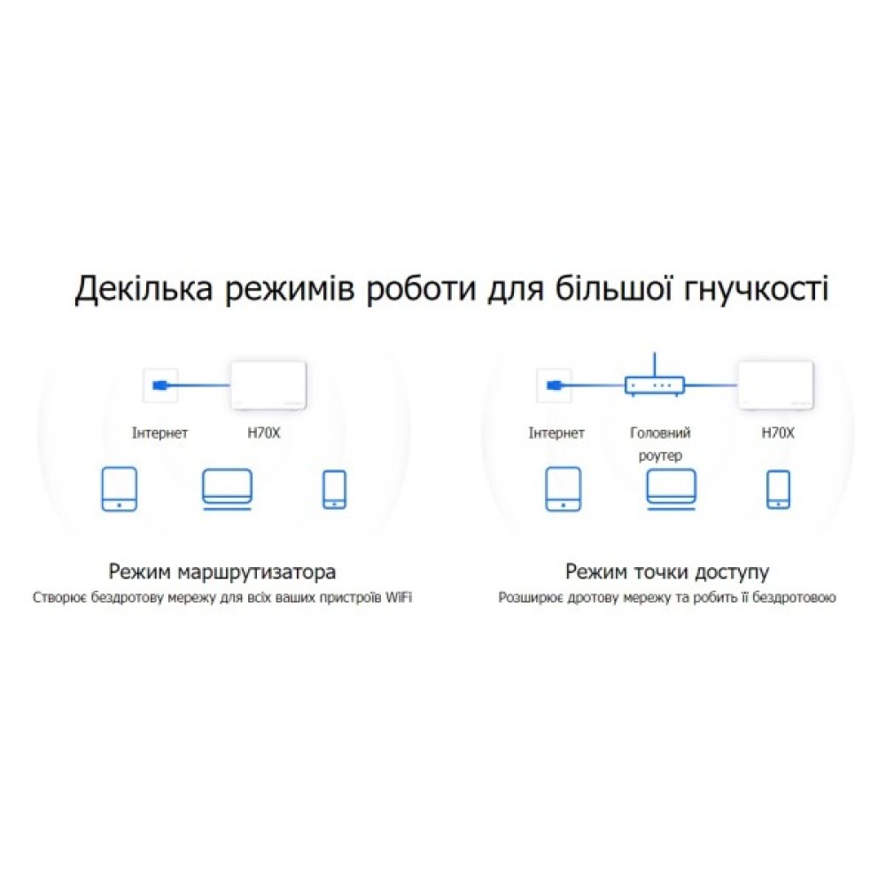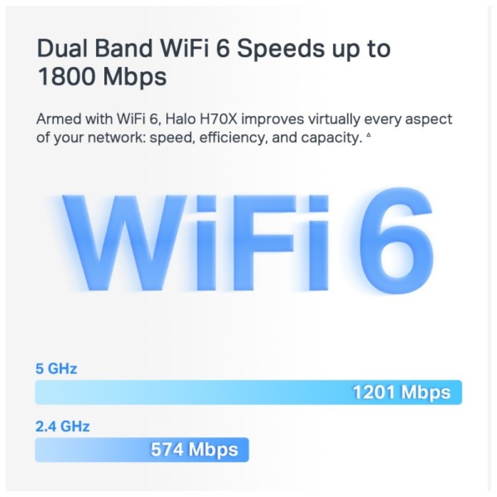 Оснащений Wi-Fi 6, Halo H70X покращує практично всі аспекти вашої мережі: швидкість, ефективність і пропускну здатність.