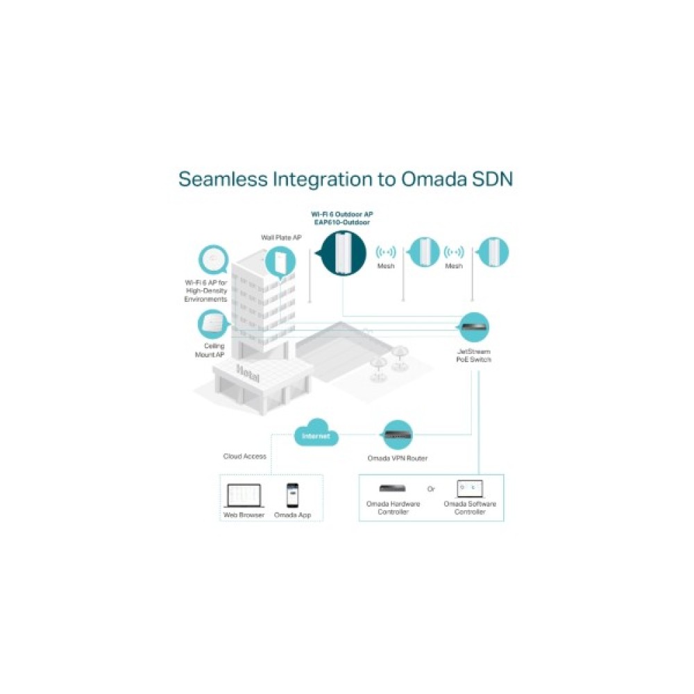 Програмно-конфігурована мережа Omada SDN включає мережні пристрої, такі як точки доступу, комутатори та шлюзи, забезпечуючи стовідсоткове хмарне управління і формуючи масштабовану мережу з управлінням з єдиного інтерфейсу.