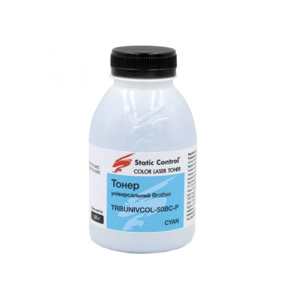Тонер Brother 50г cyan, фасовка Static Control (TRBUNIVCOL-50BC-P)