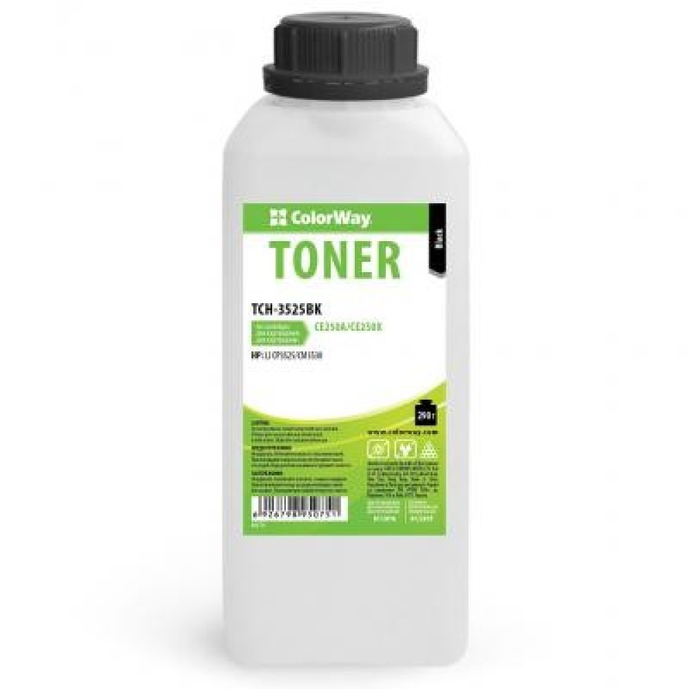 Якщо Ви використовуєте в роботі принтер або копіювальний апарат, значить, зустрічаєтеся з питанням заміни тонера або чорнила. HP CLJ CP3525 290g Black ColorWay (TCH-3525BK) - високоякісний тонер для лазерних принтерів. Цей тонер, відрізняється не тільки високою якістю, завдяки вдосконаленій технології виробництва, але і зручною упаковкою та особливим дизайном. При цьому фасовка здійснюється таким чином, щоб забезпечити зручне і просте використання. Асортимент тонерів данної компанії підходить до всіх різновидів картриджів для популярних принтерів.