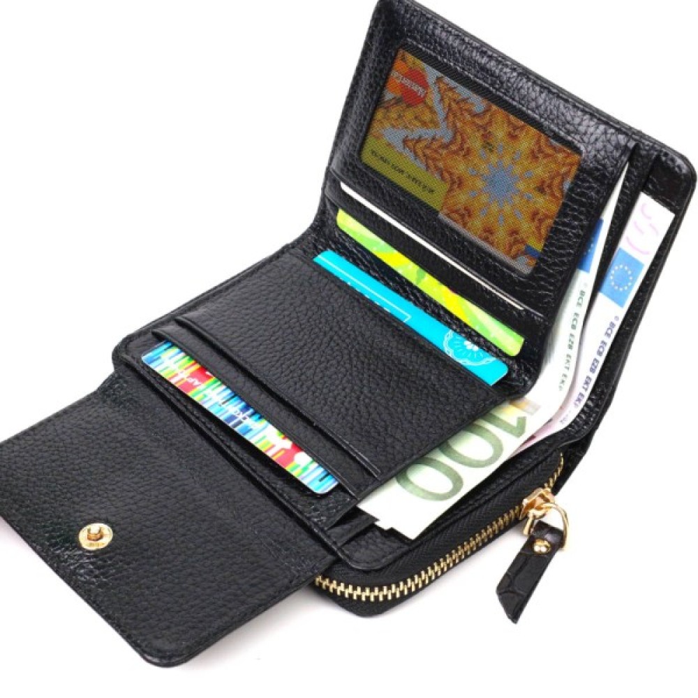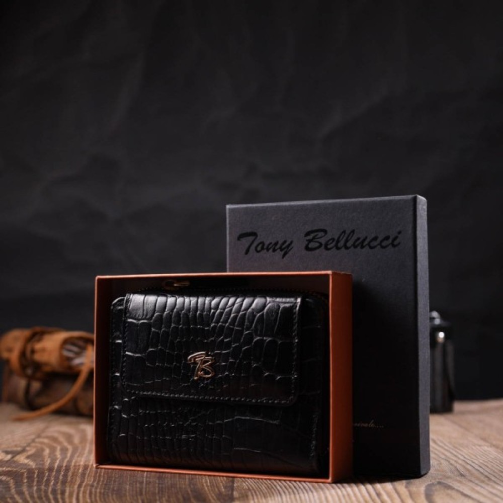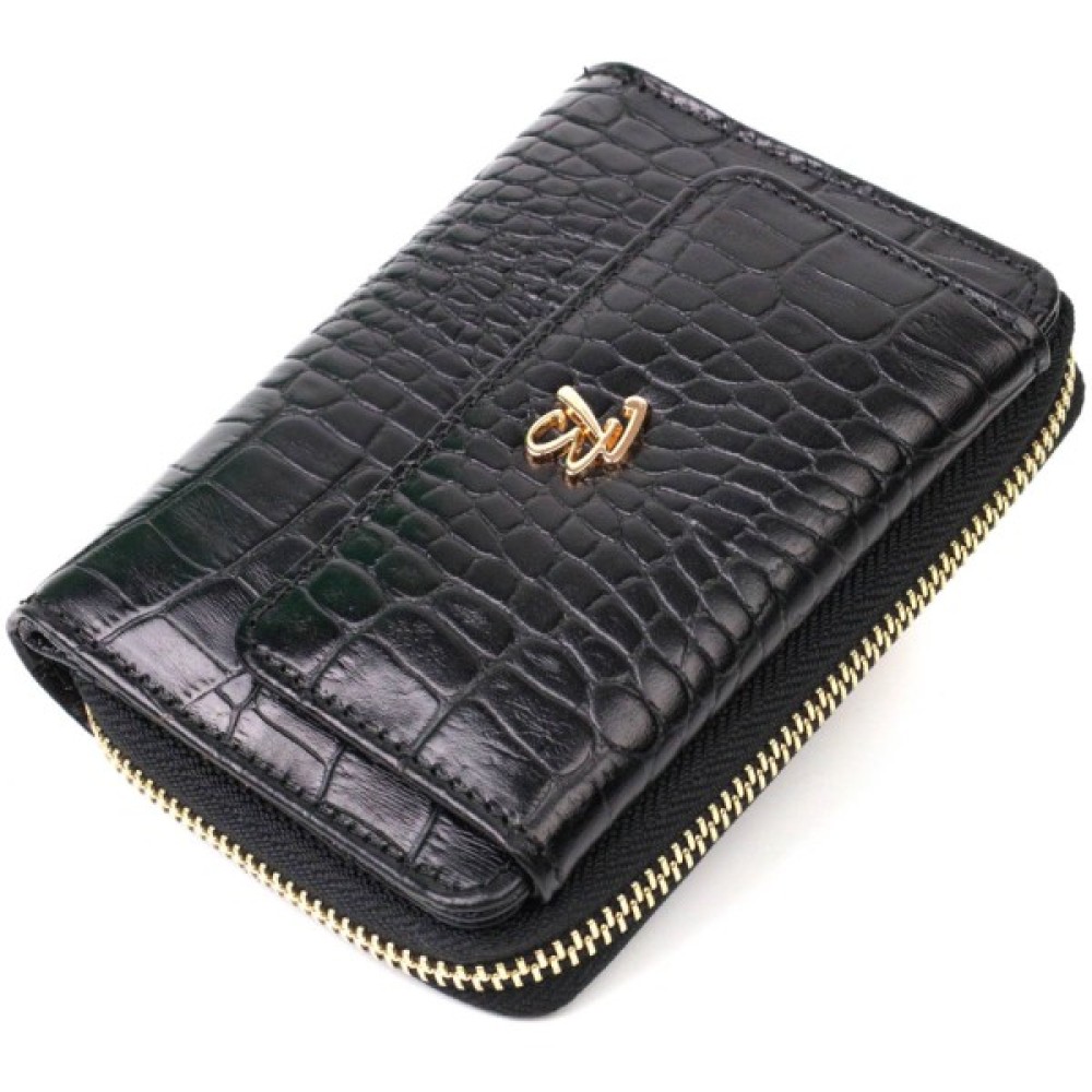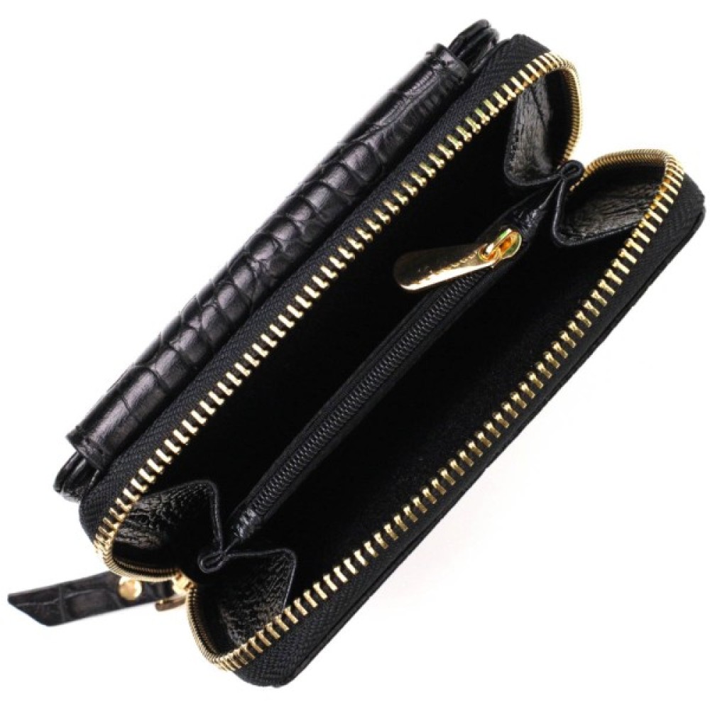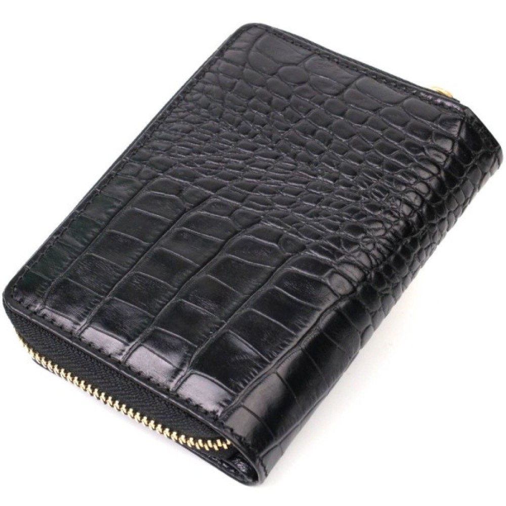 Красивий жіночий гаманець із натуральної шкіри з тисненням під крокодила. Аксесуар складається з двох широких відділень для купюр, трьох осередків для пластикових карток, двох прилеглих кишень та монетниці на блискавці, з кишенею-перегородкою на змійці. У виробі використано якісну фурнітуру золотистого кольору. Закривається гаманець клапаном на кнопку. На клапані всередині золотистий логотип компанії виробника. Купуючи цей шкіряний гаманець, Ви не тільки набуваєте стильної речі, але й отримуєте якісний аксесуар, який прослужить не один рік.