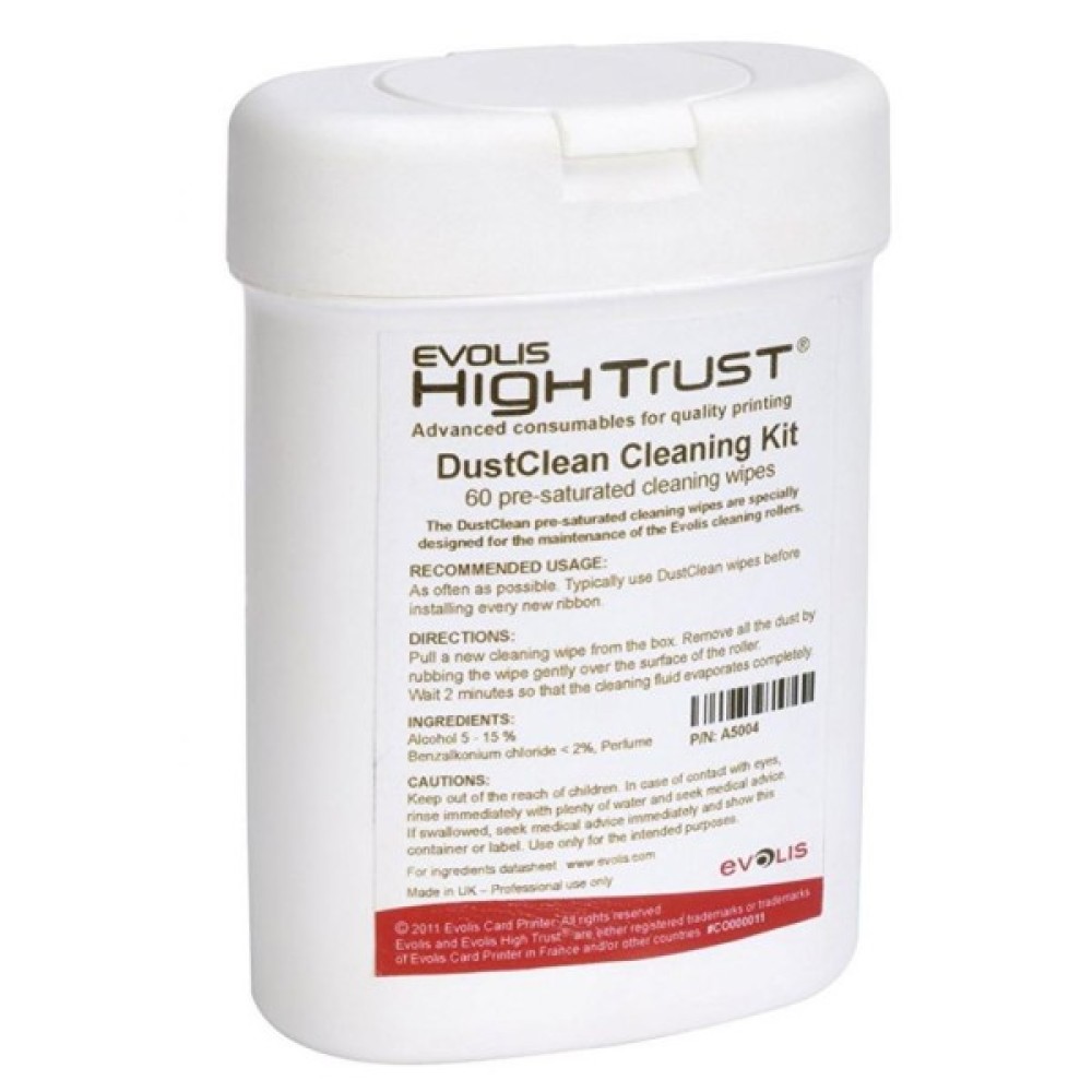 Набір для чищення принтера Evolis Cleaning Kit ACL002. Комплектація: 2 вологі карти типу 'T', 2 клейкі карти, чистячий олівець, 60 серветок. Для принтерів серій: Securion, Quantum2, Primacy, Zenius, Pebble4, Dualys3, Tattoo2.