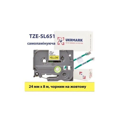 Стрічка для принтера етикеток UKRMARK B-SL-T651P, самоламінуюча, 24мм, black on yellow, аналог TZe-SL651 (900329)