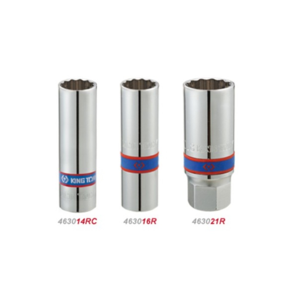 Торцева головка KING TONY 1/2" свічкова 21 мм 12-гранна з гумою (463021R)