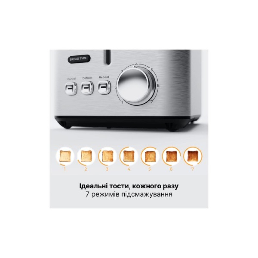 Від ніжно золотистої до насичено хрусткої скоринки — обирайте серед 7 точних налаштувань, щоб щоразу отримувати саме той результат, який любите. Для сніданкових тостів, сендвічів або перекусів — насолоджуйтесь стабільною якістю й індивідуальним підсмажуванням без зайвих зусиль