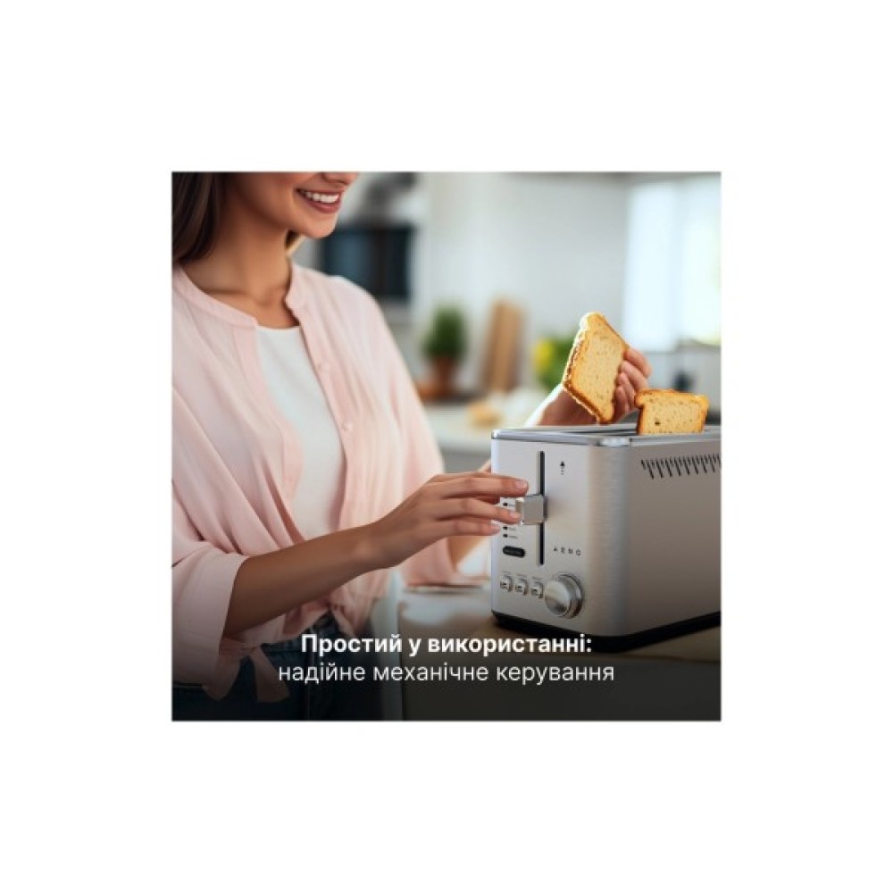 Ніяких зайвих деталей — лише зручність і контроль. Завдяки зрозумілій механічній ручці ви легко оберете потрібний режим підсмажування без екранів та складних налаштувань. Міцний і надійний у щоденному використанні, цей тостер забезпечує стабільний результат щоразу